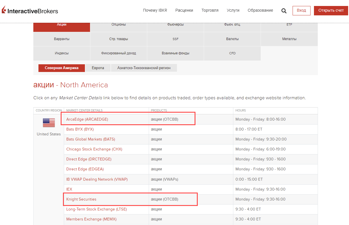 Что касается торговли, то доступ на ОТС рынок могут давать брокеры. Сделки заключаются как в телефонном режиме, так и через торговый терминал, технически это выглядит так же, как и покупка обычных акций, обращающихся на бирже. Пример такого брокера – Interactive Brokers, в перечне доступных инструментов отмечены акции, торгующиеся за пределами централизованных площадок.