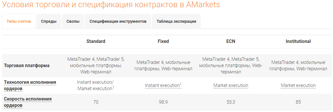 - Скорость исполнения ордеров. Не менее важный показатель, играющую очень важную роль в скальпинге на форекс. Проскальзывания и исполнения с опозданием могут привести к тому, что прибыль сократится на несколько пунктов, а в нашем случае это может составить 30-50% от всего запланированного движения, то есть также важно как и спред. При выборе брокера не стоит ориентироваться на демо, нужно проверять как минимум на центовом счёте, ведь для демо создаются идеальные условия, которых на реальных счетах не бывает. ПО параметру скорости лучшим можно назвать Амаркетс, причём практически все предлагаемые типы счетов могут похвастаться очень коротким временем обработки распоряжения.