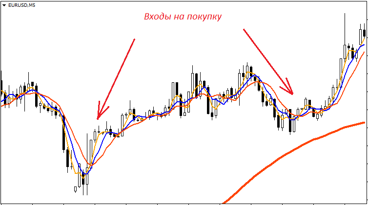 - Затем она пересекает SMA8 и вот тут уже можно входить.