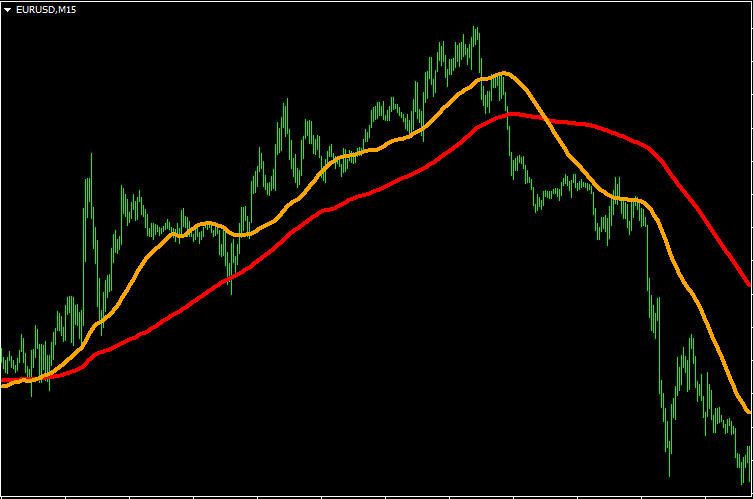 - использование разных периодов приведёт к тому, что скользящая средняя с меньшим периодом будет пересекать среднюю с большим периодом при смене тренда;