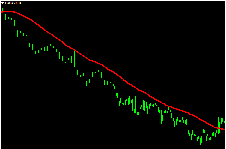 А теперь простыми словами: вот есть часовой график евро/доллара, на котором используется индикатор moving average с параметром 100. Соответственно, индикатор посчитает сумму последних ста значений баров, поделит на 100, и в итоге получится усреднённое значение, которое будет соответствовать текущему бару. Для следующего будет сделано то же самое, поэтому у нас и получается линия, каждая точка которой посчитана и представляет самостоятельное значение для отрезка графика.