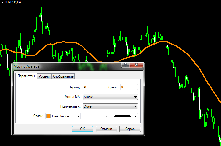 Работа индикатора скользящее среднее
