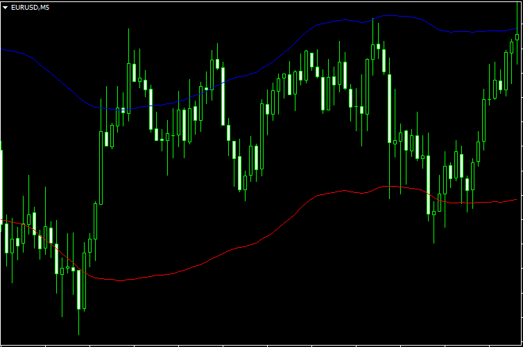 - наложить на график индикатор moving average и сместить его на необходимый уровень, после чего наложить ещё один и также сместить его уже в другую сторону на тот же уровень;