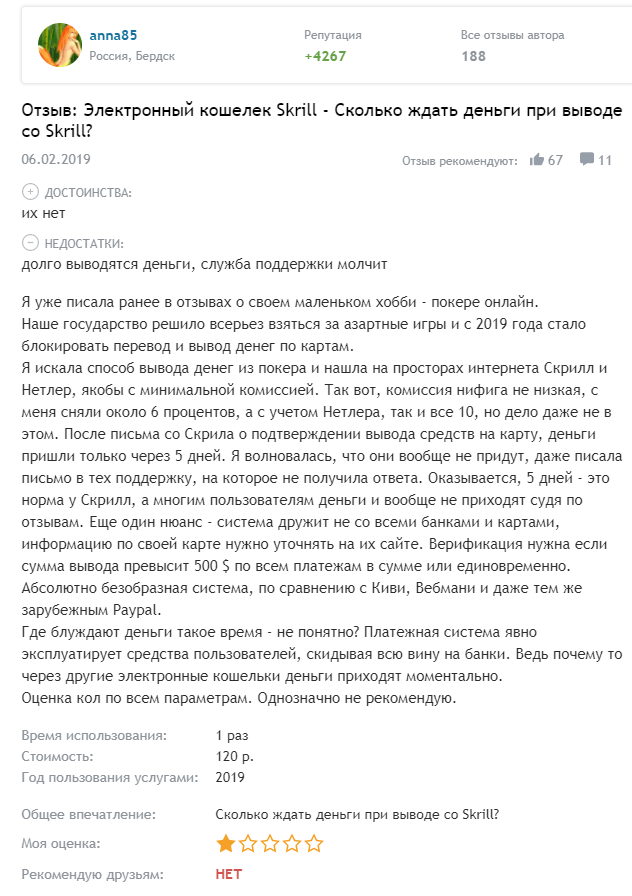 Отзыв 3 о кошельке Skrill