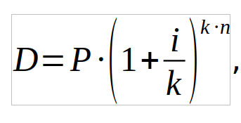 Расчет сложного процента в случае с банковским депозитом ведется по формуле:
