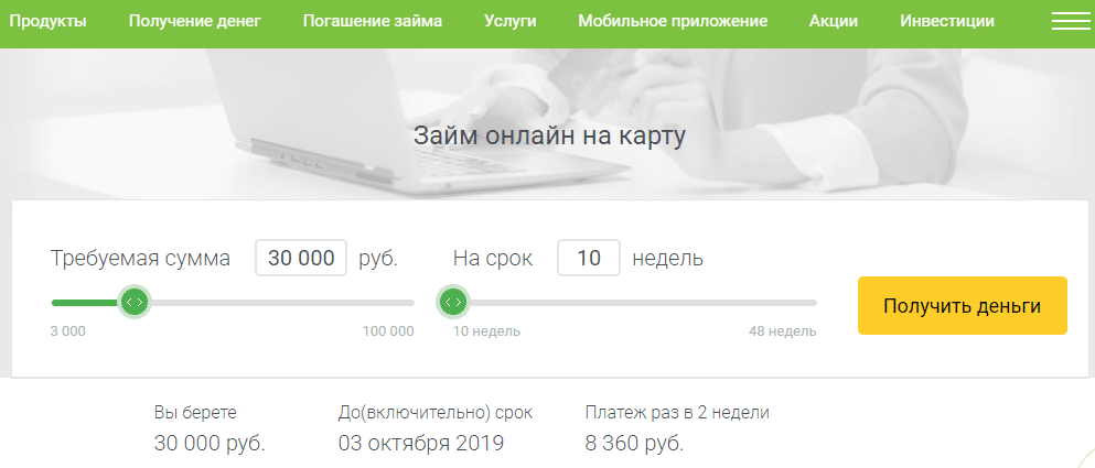 - срок рассмотрения заявки – обычно меньше чем за полчаса деньги окажутся на карте заемщика;