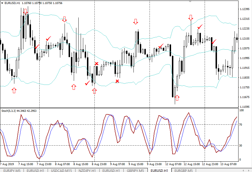 Это целый пласт торговых систем для бинарных опционов. Здесь линии Боллинджера используются в комплексе со Стохастиком, RSI и прочими осцилляторами.