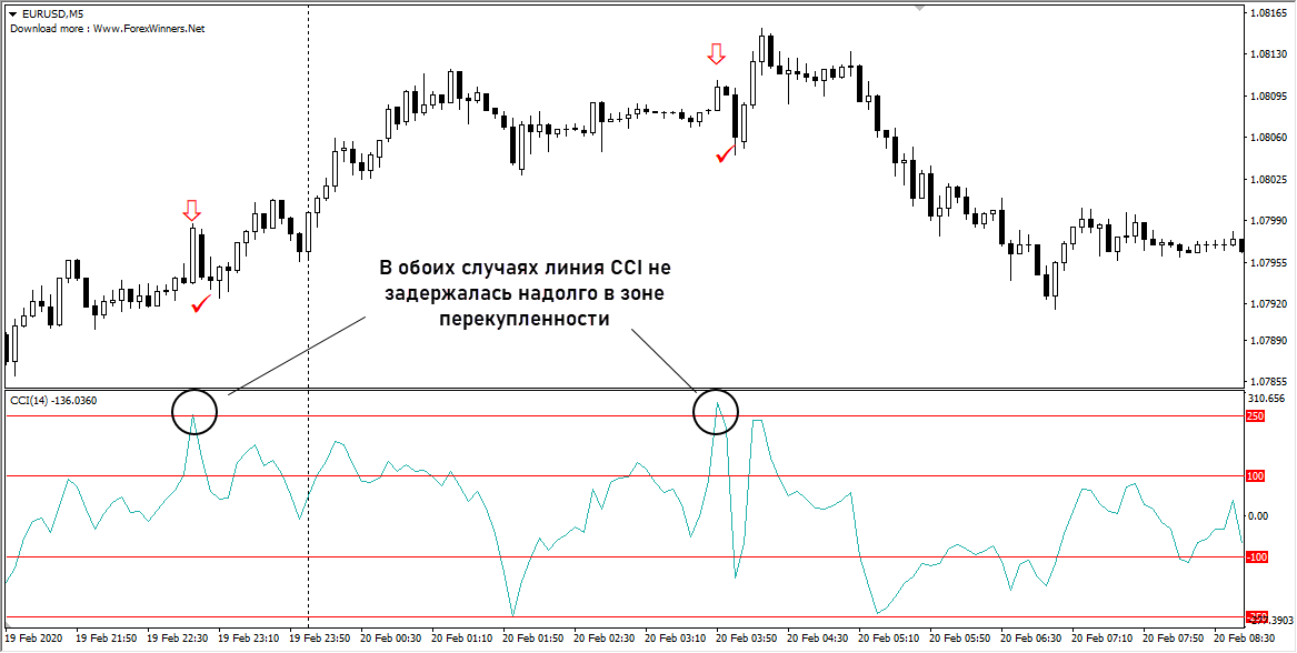 На CCI нужно вручную добавить уровни, их положение определяется визуально. Действуем по аналогии с обычными осцилляторами, уровни должны отсекать зоны перепроданности и перекупленности.