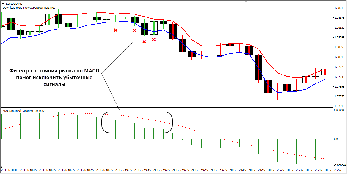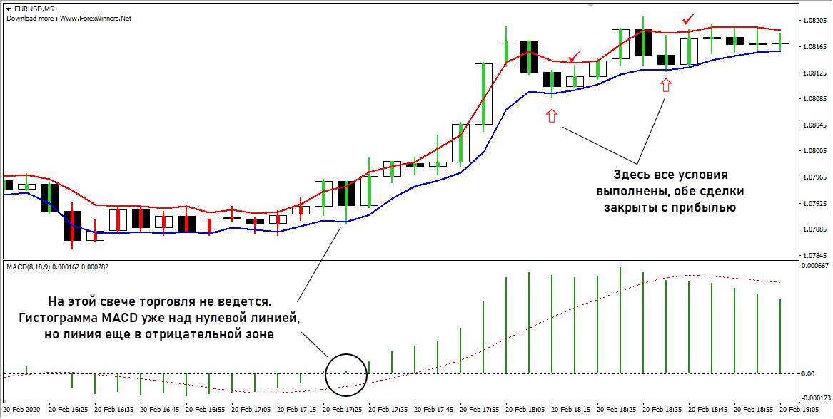 - MACD с параметрами 8,18, 9;