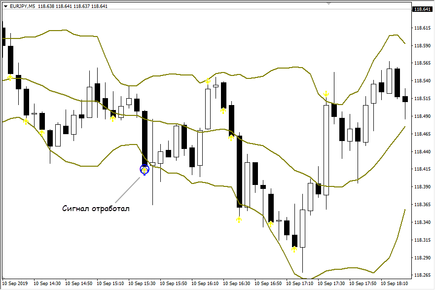 Полосы Боллинджера используются как дополнительный фильтр. Порядок работы предлагается следующий: