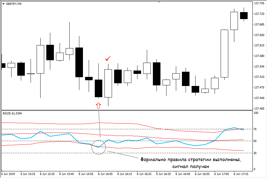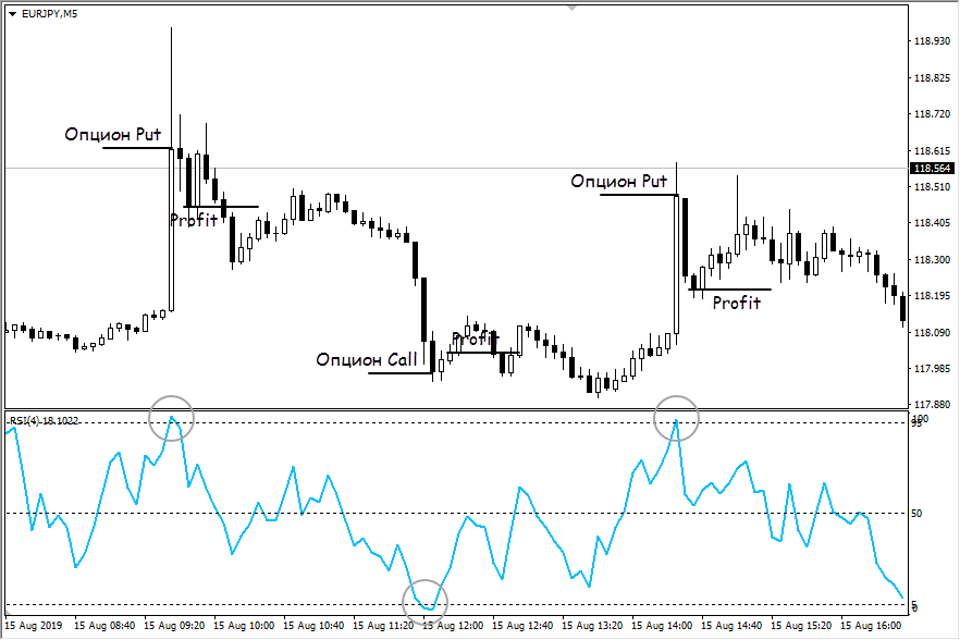 Еще одна RSI стратегия, в которой осциллятор RSI играет роль вспомогательного инструмента. ТС подходит для турбо опционов и сроков экспирации от одной до 5 минут.