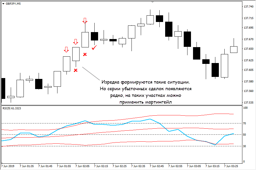 Без убытков торговля не обходится. Для более быстрого выхода из просадки можно поэкспериментировать с мартингейлом, но будьте осторожны, давление на депозит растет быстро. Нежелательно выстраивать серии из более чем 4 уровней мартингейла.