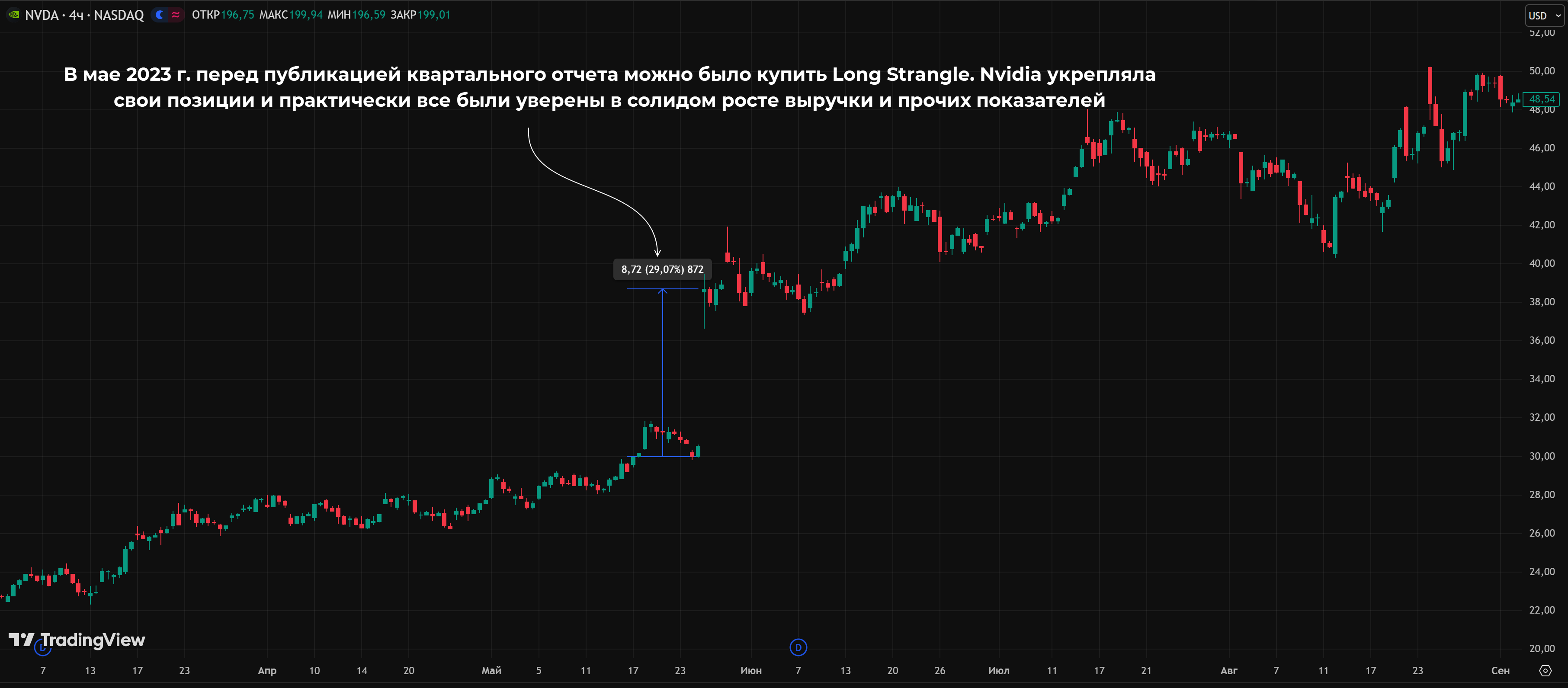При длинном Стрэнгле трейдер фактически покупает волатильность. При выборе момента для покупки нужно учитывать: