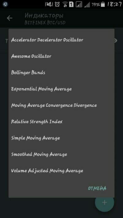 - Широкий выбор индикаторов. В коробке TabTrader поставляется с 2 популярными индюками. Их можно добавлять на график в пару касаний и настраивать параметры под себя. Для продвинутых пользователей есть маркетплейс с сотнями кастомных индикаторов на любой вкус.