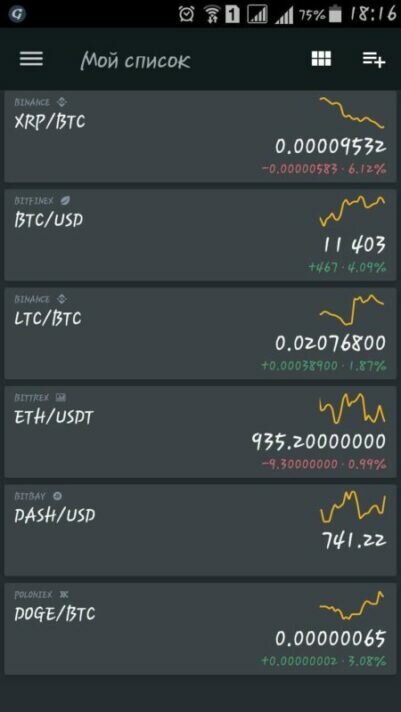 - Слежение в реальном времени за курсами интересующих криптовалют.