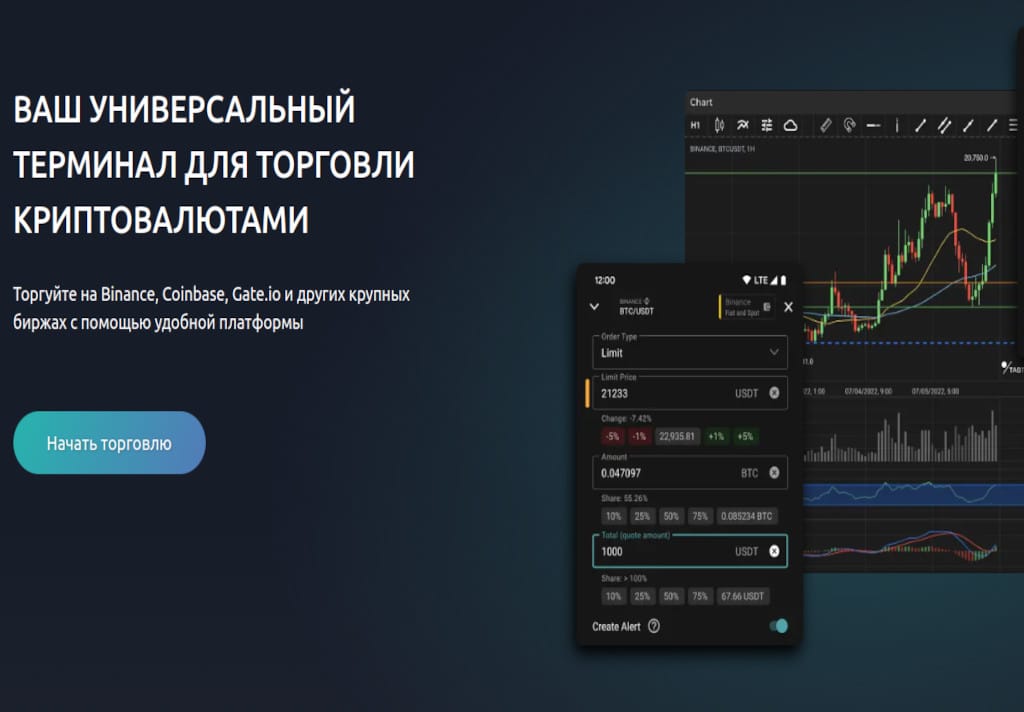 TabTrader доступен на Android и iOS и может подключаться к аккаунтам на более чем 30 криптовалютных биржах, включая Binance, Coinbase Pro, Kraken, Bitfinex, KuCoin, HTX, OKEx. Приложение объединяет данные со всех подключенных бирж и показывает сводные котировки, графики, объемы торгов.