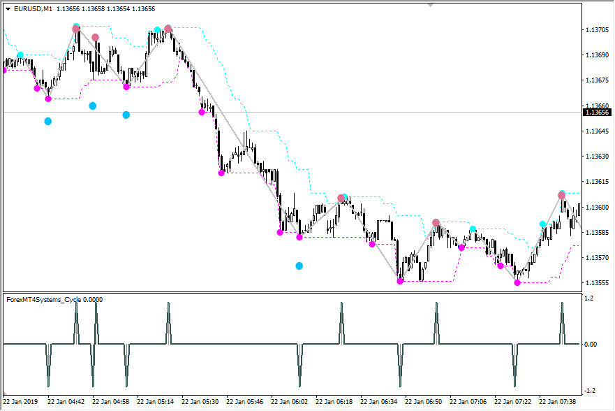 - ForexMT4SystemsCycle – индикатор кастомный, основан на нескольких стандартных. В его работе учитываются показания RSI и простых скользящих средних.
