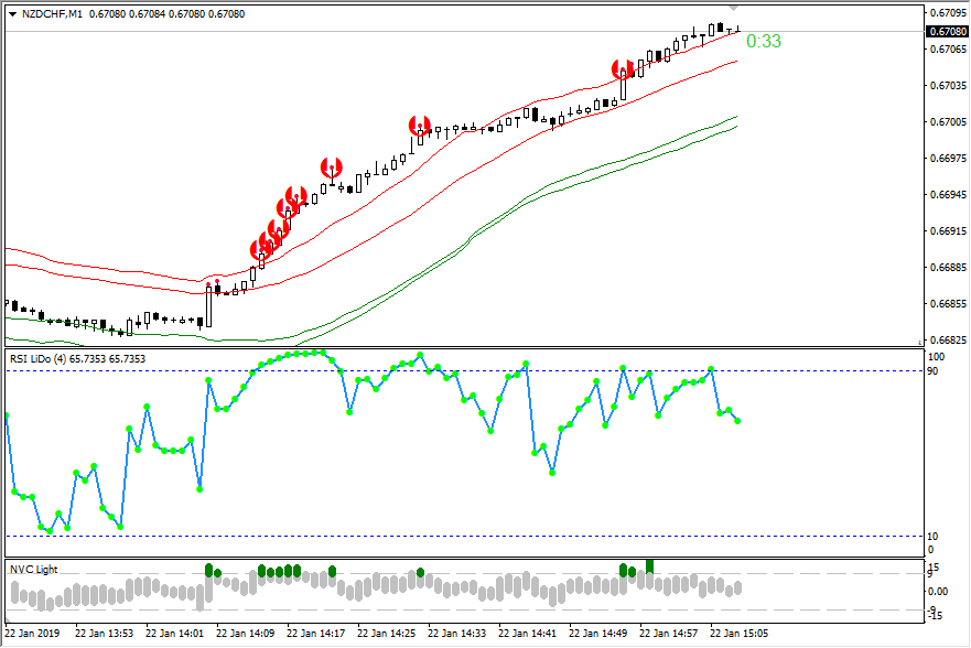 - NVC Light – осциллятор в виде гистограммы. Зеленые столбцы указывают на вход графика в область перекупленности, красный – в область перепроданности;