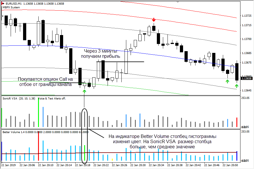 - SonicR VSA и Better Volume – индикаторы отображаются в виде гистограммы. Нас они будут интересовать исключительно как фильтры;