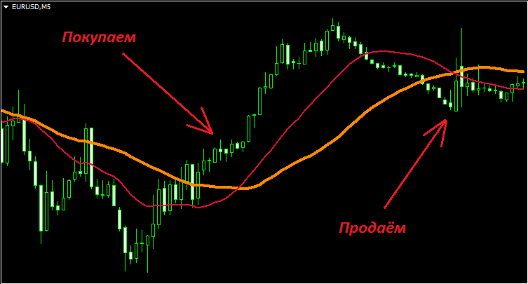- Если быстрый мувинг пересекает медленный снизу вверх, то покупаем.