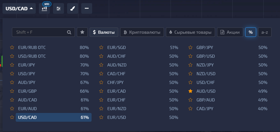 Ниже показаны выплаты у Pocket Option в 02:48 МСК. По USDCAD (неплохая для ночной торговли пара) компания дает 61% при закрытии сделки в деньгах. При такой выплате минимальный винрейт для выхода в ноль не должен быть ниже 62%. На рисунке выше – реальный пример рыночной ситуации, когда можно было закрыть с прибылью 10-12 сделок подряд. Ночью реально достичь винрейта в 70-80%, так что даже с выплатой около 60% можно зарабатывать.