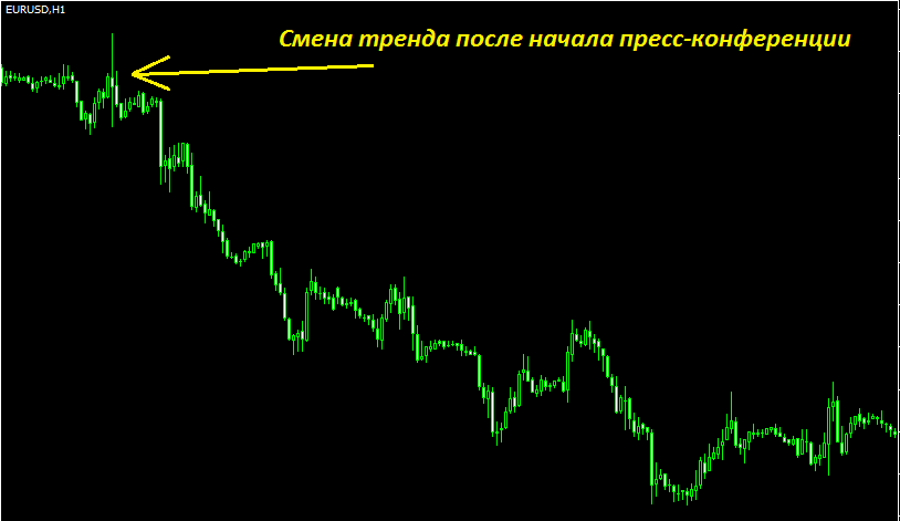 Процентная ставка крайне важна, но она очень редко когда меняется внезапно. Это может сильно расшатать фондовый рынок страны – если вдруг поменять ставку рефинансирования. А это совсем ни к чему, поэтому рынки обычно готовят к такому событию. И происходит это именно на пресс-конференциях, которыми сопровождается каждое заседание. Как правило, через полчаса или чуть больше после оглашения ставки начинается общение руководства с журналистами.