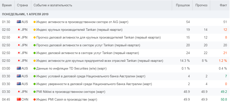 - Новости средней важности, помечаются двумя знаками (жёлтым цветом). Подобных публикаций уже значительно больше. Имеют ограниченное влияние, которое не сильно меняет картину внутри дня.