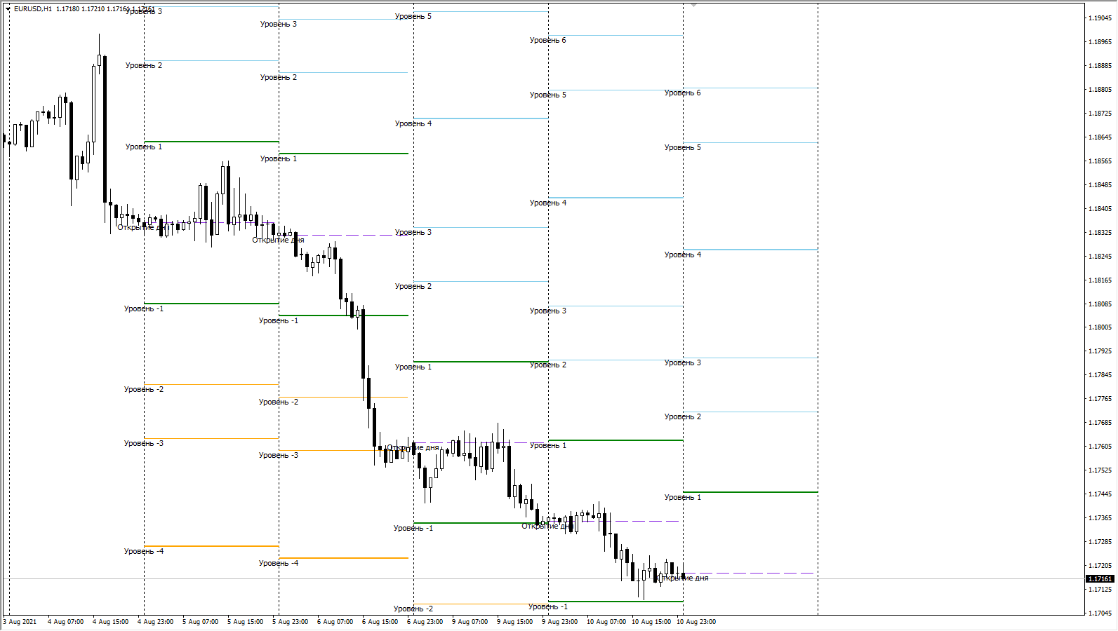 Уровни строятся по той же логике, что и в случае с Gann Levels, можно менять временные интервалы, на которых отображаются построения.