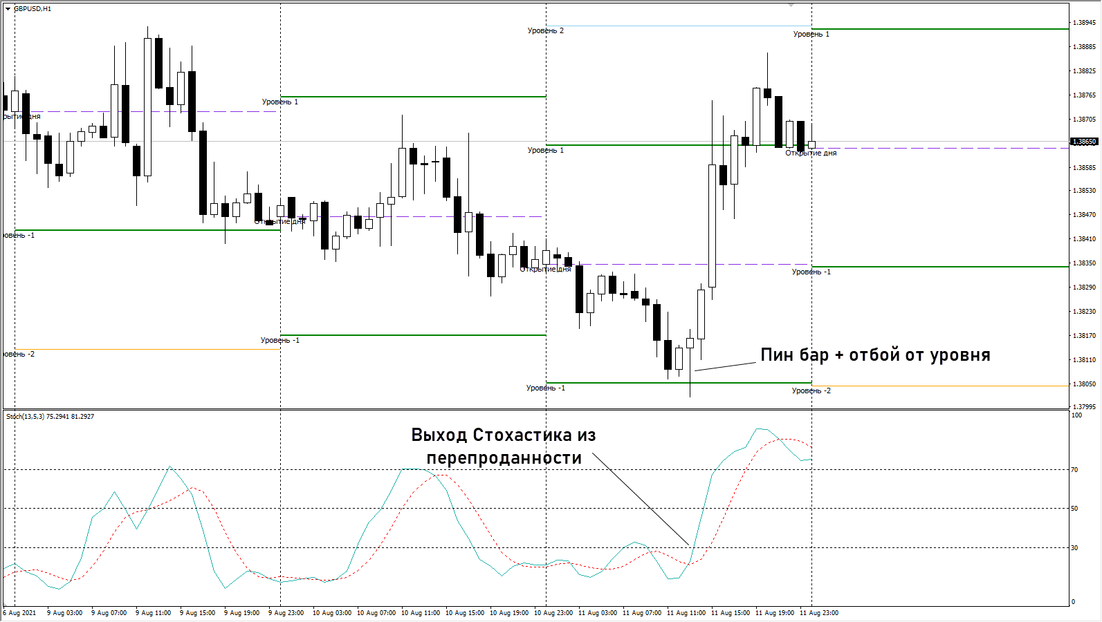 Это минимальные условия для работы на отбой. Желательно, чтобы оба сигнала сформировались во время европейской или американской сессии. Исключение – пары с японской иеной, австралийским и новозеландскими долларами. По этим инструментам активность может быть и во время азиатской/тихоокеанской торговых сессий.