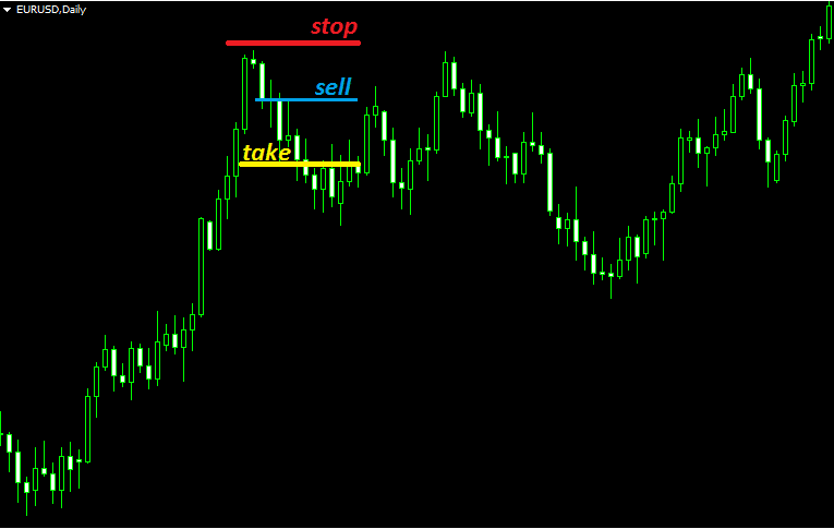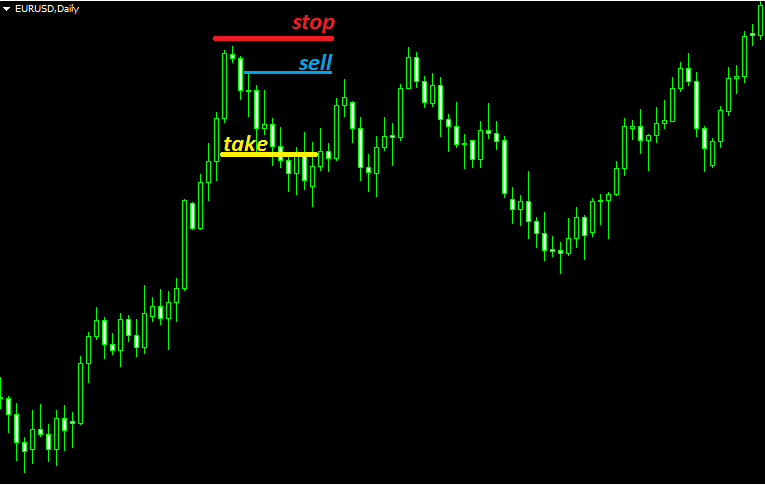 - Если мы говорим о дневных свечах, то лучше будет немного подождать, чтобы котировки успокоились после окончания американской торговой сессии. После того, как пройдёт один-два часа, можно открывать сделку на продажу.
