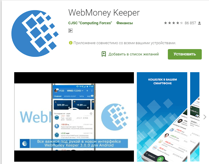 - Кипер для мобильных устройств. Есть клиент для управления Webmoney кошельком с мобильного устройства. Это приложение загружается бесплатно из Play Market/App Store, авторизация проводится по аналогии со стандартной версией кипера;