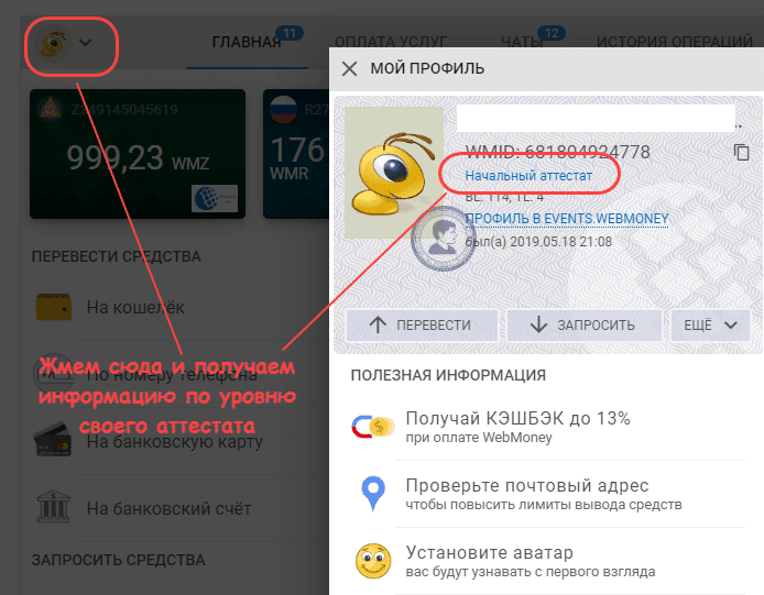 - начальный – значительно возрастают лимиты, можно размещать новости на news.wmtransfer.com, есть возможность автоматизации приема средств, становится доступен Capitaller. Получить аттестат этого типа можно через сайт Госуслуг, у Персонализатора (за 1 WMZ) либо записав видеообращение (этот вариант обойдется уже в 6 WMZ);