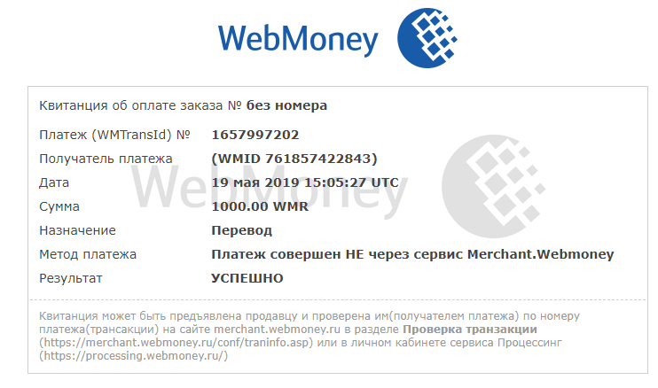 - срока использования системы WebMoney Transfer.