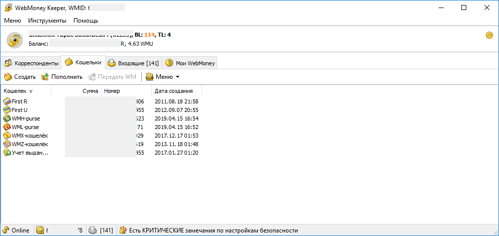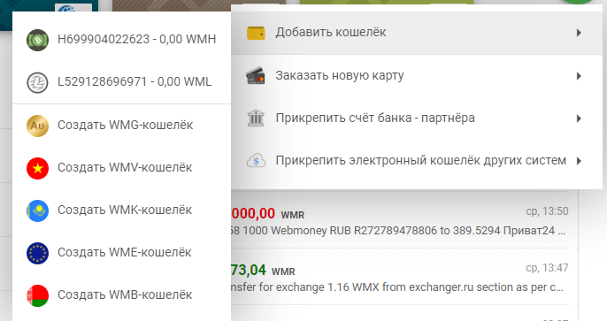 Подробнее о криптовалютных кошельках в этой ЭПС поговорим далее. Один пользователь может иметь несколько разных WM счетов. Для удобства после регистрации каждый клиент получает уникальный идентификатор, так называемый WMID. Войдя в аккаунт клиент может сам создать кошельки WebMoney, не нужно отдельно регистрироваться для каждого счета в новой валюте.