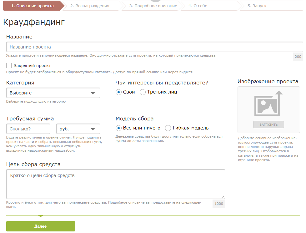 - краудфандинг – рекомендуется для тех, кто преследует исключительно коммерческие цели. Суть в том, что вы представляете на суд общественности свой проект, даете его описание, перспективы развития, задаете параметры сбора и ждете. Если участники системы сочтут его перспективным, получите деньги на его дальнейшее развитие;