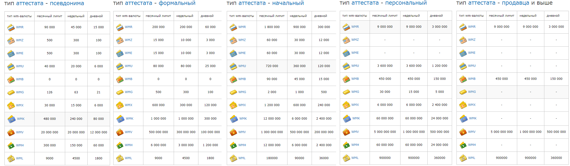 - синий – от 100000 WMZ.