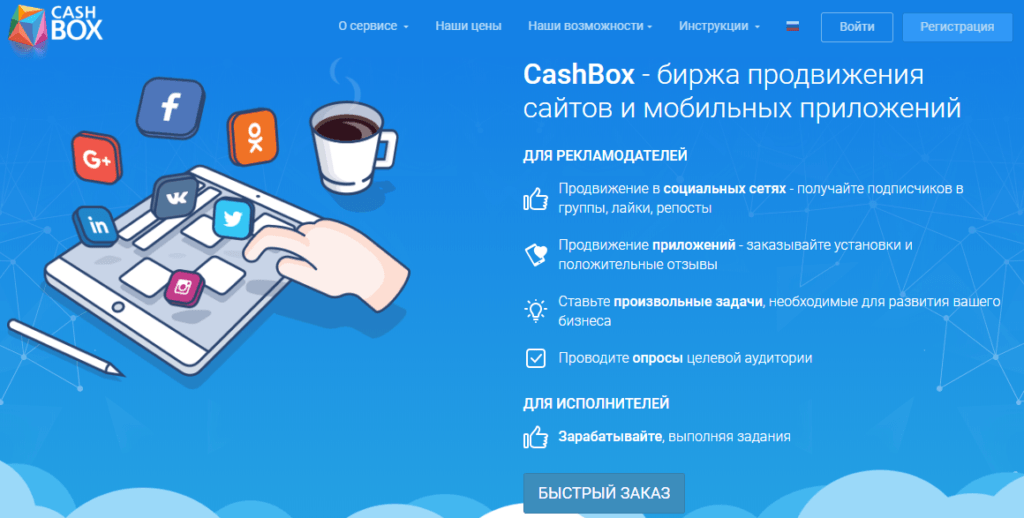 - Cashbox – Вебмани является единственной платежной системой, с которой работает этот сервис. Сам сервис используется и для продвижения своего бизнеса в сети (заказ лайков, установок приложений для смартфонов, заказ опросов целевой аудитории перед стартом нового бизнеса). Также здесь можно зарабатывать за счет выполнения оплачиваемых целевых действий, например, прохождения платных опросов. Суммы небольшие, но и задания особо сложными не назовешь. Проект полностью самостоятельный, но получать оплату сможете только на кошельки Вебмани;
