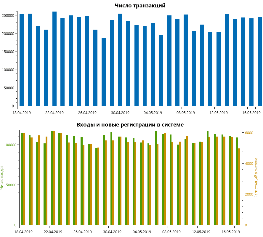 - за день происходит до 250 тыс. транзакций;