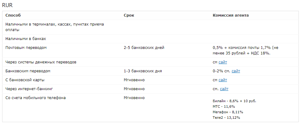 Помните, что при при вводе средств есть комиссия агента. Например, в случае с банковским переводом в рублях комиссия составит до 2%.
