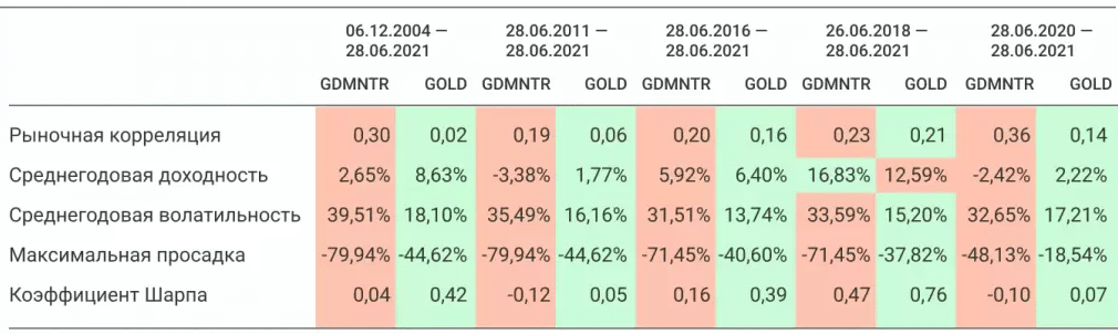 В FinEx проводили любопытные расчеты, в которых сравнивались эти показатели для индекса и драгметалла. Результаты следующие: